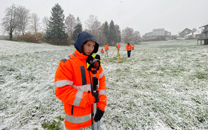 A l'IUT elles apprennent dès leur arrivée que EGLETONS est un village à facettes. Ainsi Manon a goutté aux joies de la topographie sous la neige.